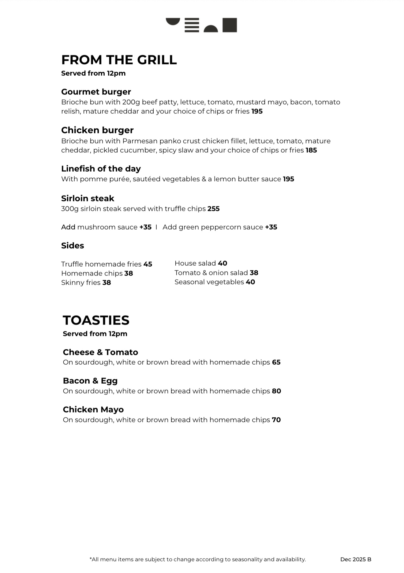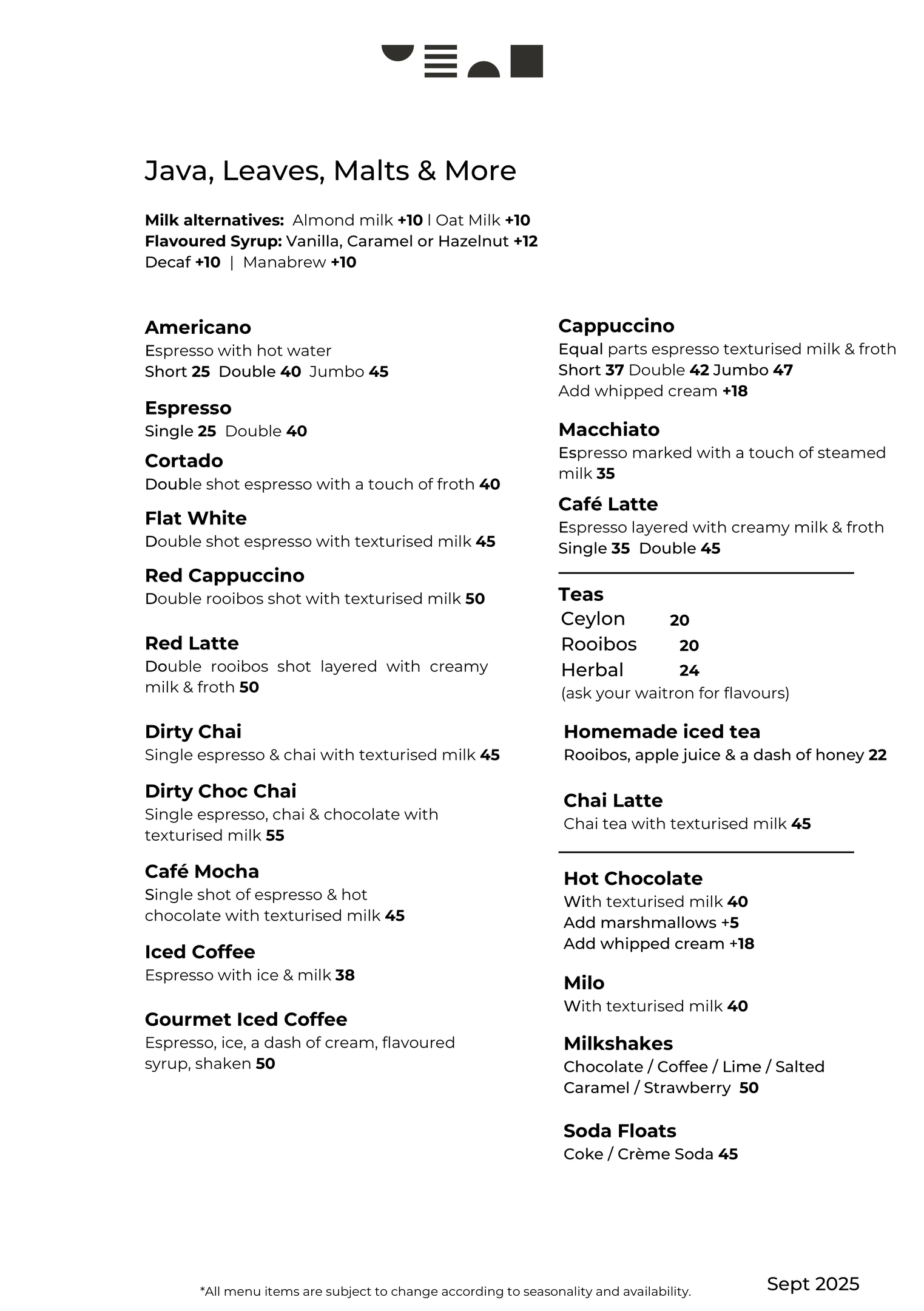 Alcohol is available from 10am. Click on the menu page to enlarge.
